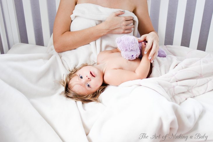 I have learned to let you get your energy out before bedtime at night. You literally make circles around the room with your dad and I chasing you to brush your hair, put your diaper on, moisturize you, put your pjs on. Afterwards, we are both exhausted, but you’re still looking to play and roll around a bit. I read you two Russian books, then turn the light off and read you “1 fish, 2 fish” by Dr Seuss on the phone and before we even get to the line “And now good night, it’s time to sleep“, you roll off of me into a nursing position knowing what’s coming next.