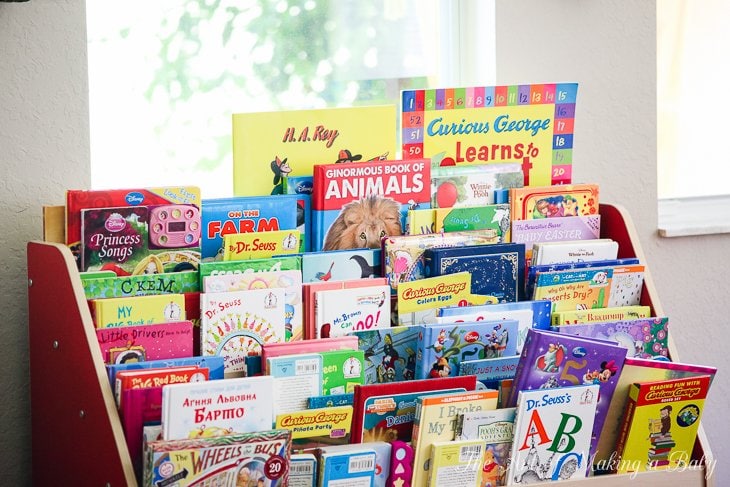 8. I have also heard that front facing bookshelves tend to pique a child’s interest in books because they can see the covers and easily access the books. I don’t know that it would magically turn a child who doesn’t enjoy reading into a child who enjoys reading, but it makes sense that a child might become more interested in books if they can see them.